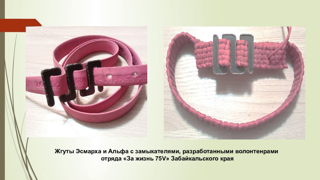 Жгуты Эсмарха и Альфа с замыкателями, разработанными волонтенрами отряда «За жизнь 75 V » Забайкальского края