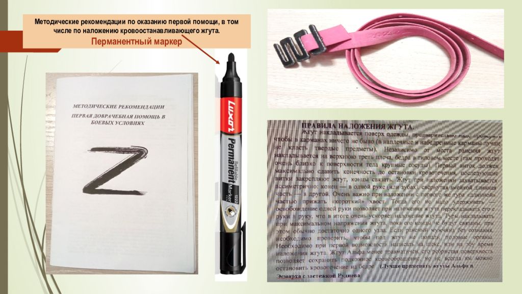 Методические рекомендации по оказанию первой помощи, в том числе по наложению кровоостанавливающего жгута. Перманентный маркер
