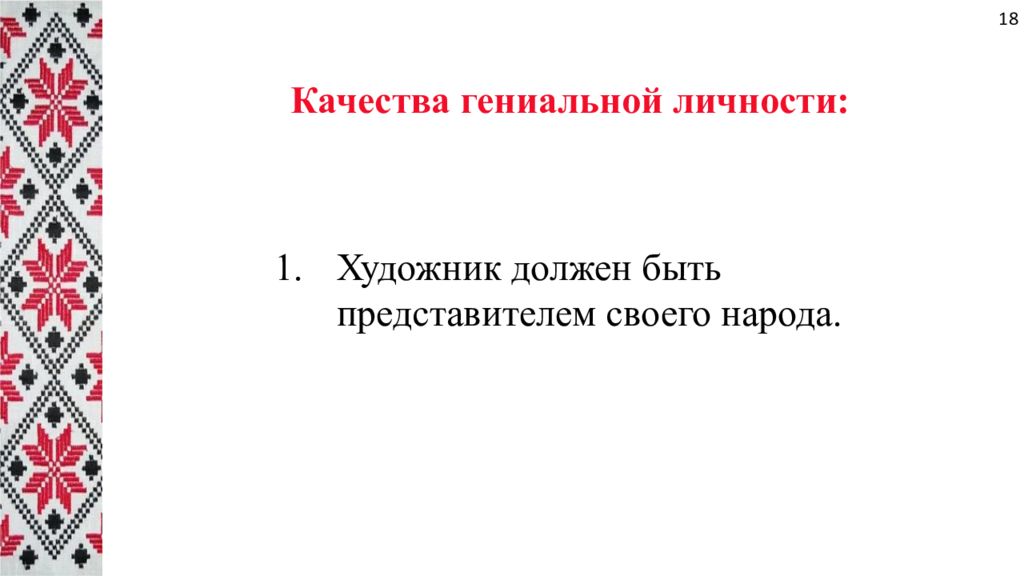 Качества гениальной личности: Художник должен быть представителем своего народа. 18