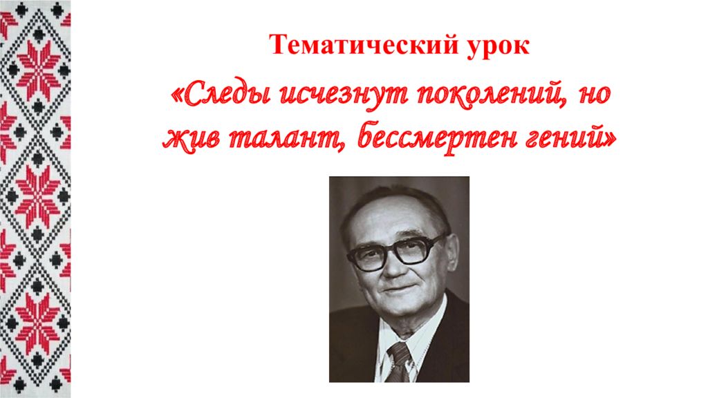 Тематический урок «Следы исчезнут поколений, но жив талант, бессмертен гений»