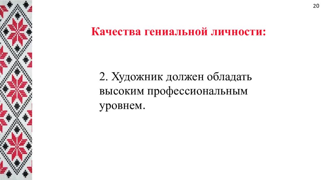 Качества гениальной личности: 2. Художник должен обладать высоким профессиональным уровнем. 20