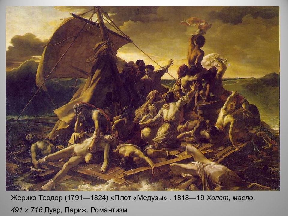 Жерико Теодор (1791—1824) «Плот «Медузы». 1818—19 Холст, масло. 491 x 716 Лувр, Париж. Романтизм
