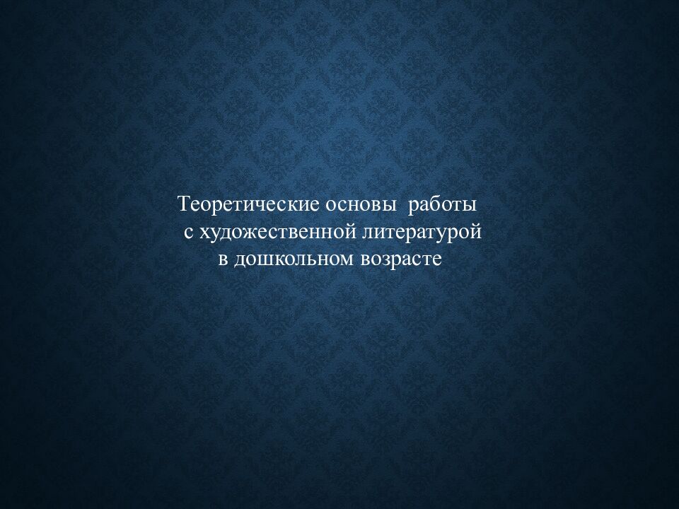 Теоретические основы работы с художественной литературой в дошкольном возрасте
