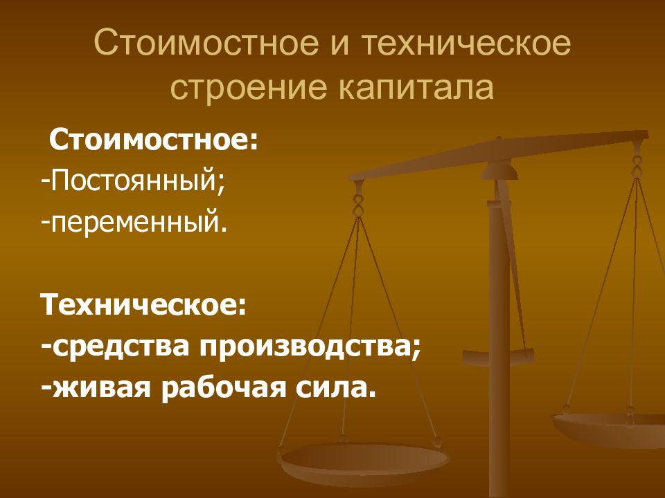 Слайд 8: Стоимостное и техническое строение капитала