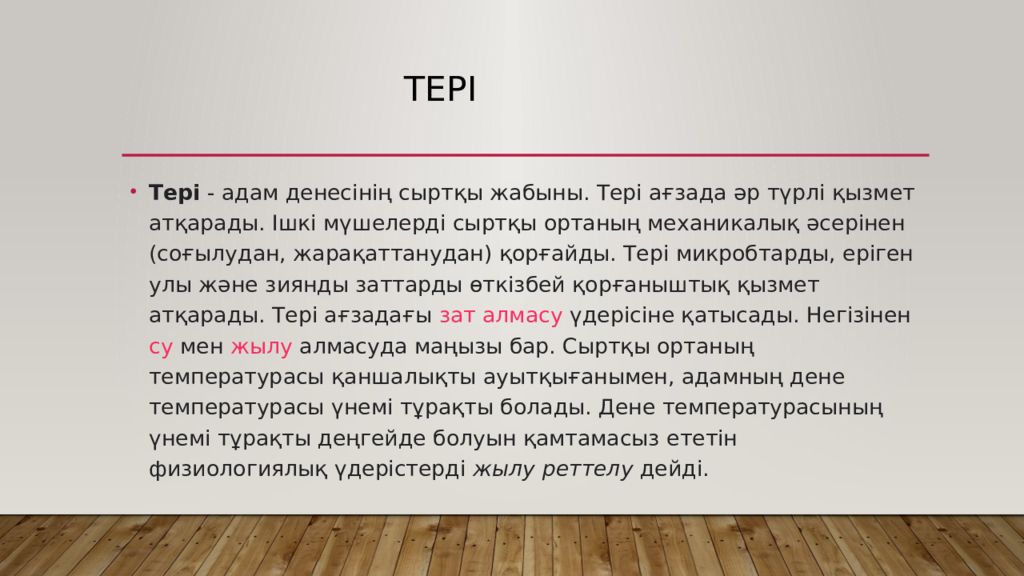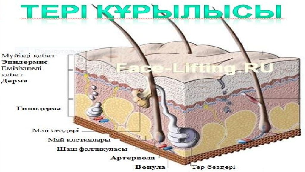 Первый слайд презентации: Тері, оның құрылысы, қызметі, гигиенасы