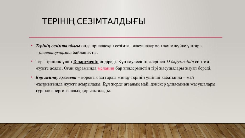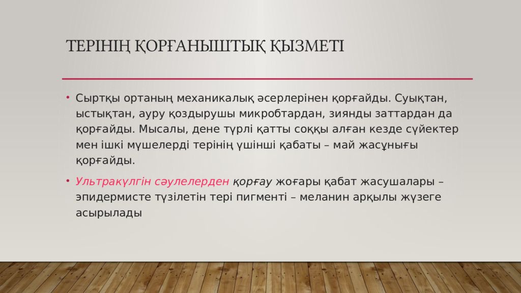 Слайд 10: Терінің қорғаныштық қызметі