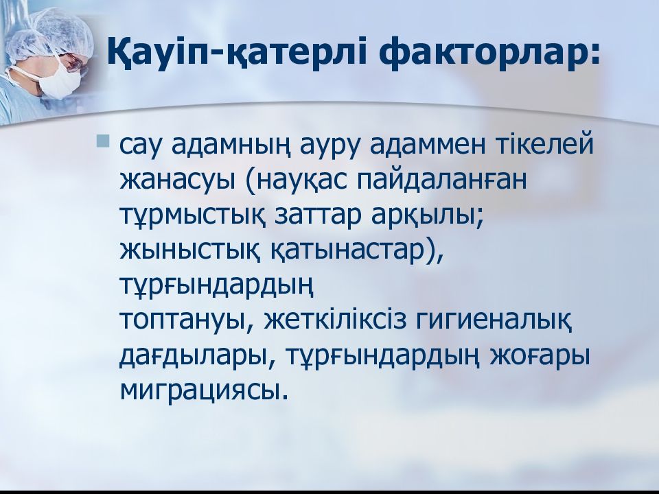 сау адамның ауру адаммен тікелей жанасуы ( науқас пайдаланған тұрмыстық заттар арқылы ; жыныстық қатынастар ), тұрғындардың топтануы, жеткіліксіз гигиеналық дағдылары, тұрғындардың жоғары миграциясы.