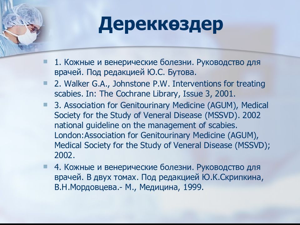 Последний слайд презентации: Тері патологиясы қышыма қотыр: Дереккөздер