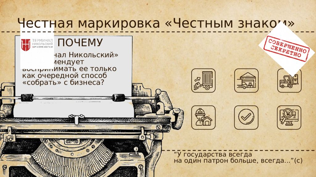 «Терминал Никольский» не рекомендует воспринимать ее только как очередной способ «собрать» с бизнеса? ПОЧЕМУ “ У государства всегда на один патрон больше, всегда... ” (с) Честная маркировка «Честным знаком»