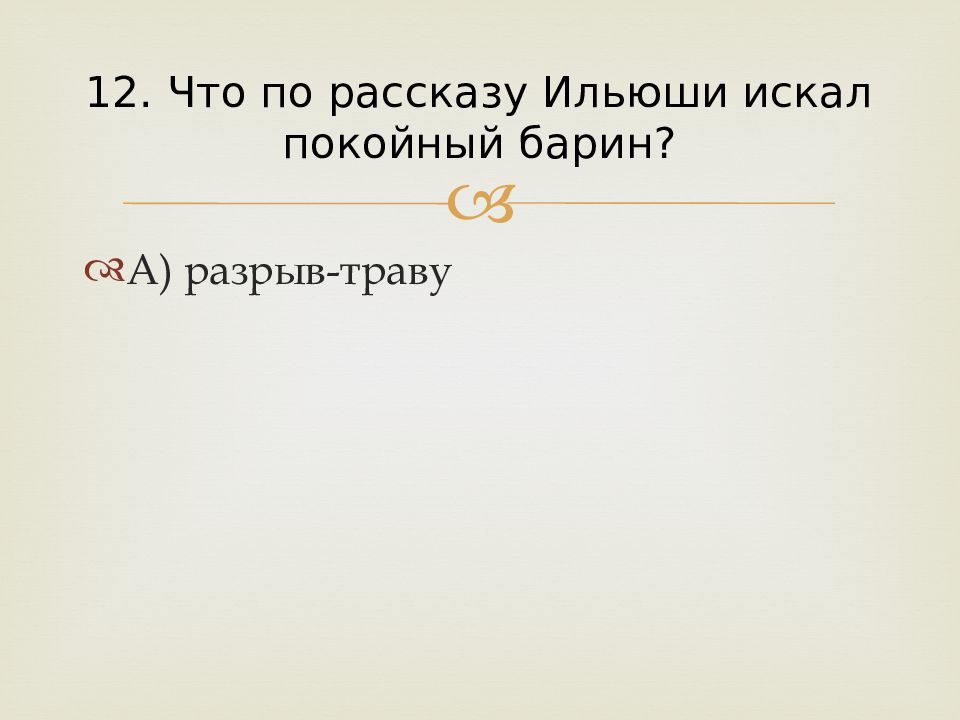 А) разрыв-траву 12. Что по рассказу Ильюши искал покойный барин?