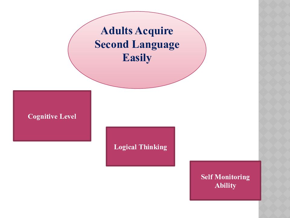 Adults Acquire Second Language Easily Cognitive Level Logical Thinking Self Monitoring Ability