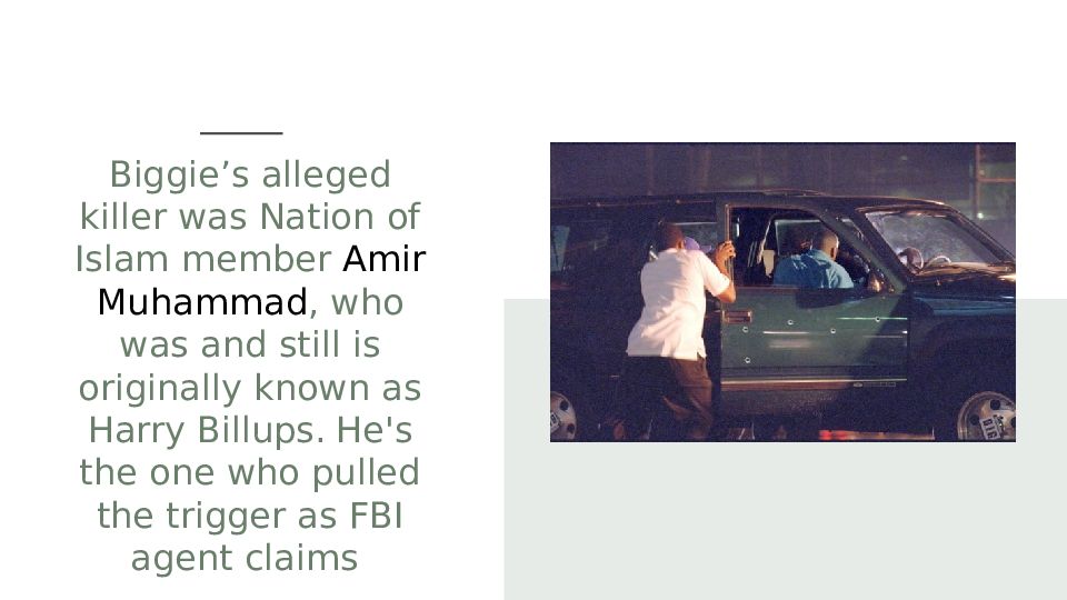 Biggie’s alleged killer was Nation of Islam member Amir Muhammad, who was and still is originally known as Harry Billups. He's the one who pulled the trigger as FBI agent claims