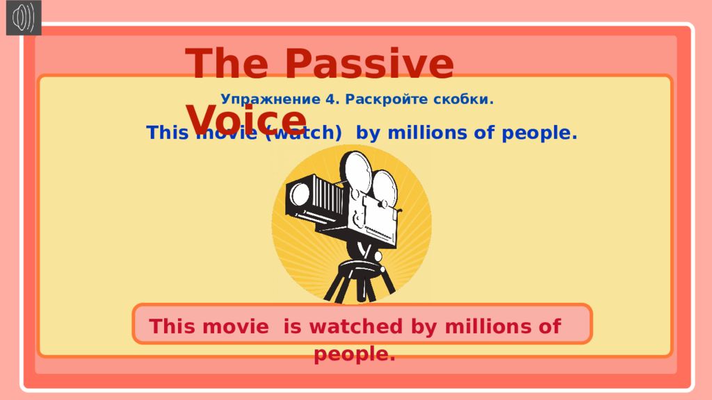 This movie (watch) by millions of people. The Passive Voice Упражнение 4. Раскройте скобки. This movie is watched by millions of people.