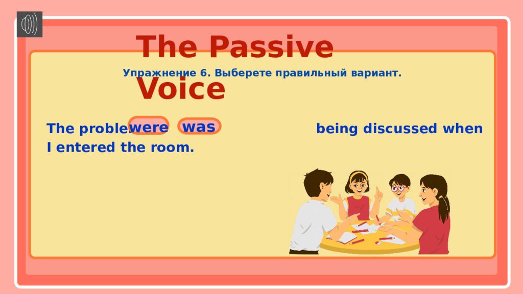 The problem being discussed when I entered the room. were was The Passive Voice Упражнение 6. Выберете правильный вариант.