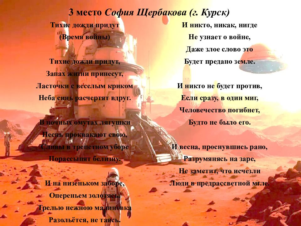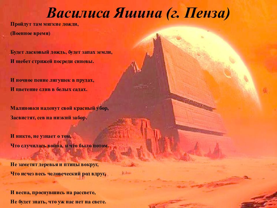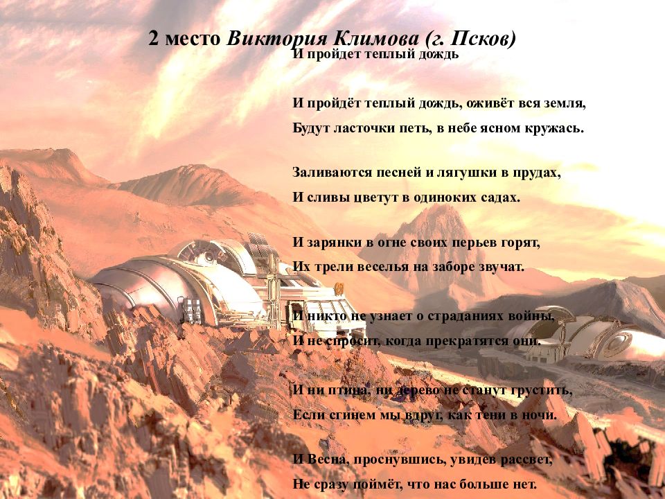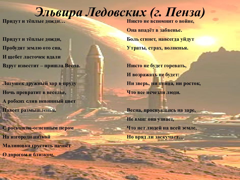 Последний слайд презентации: There will come soft rains…: Эльвира Ледовских (г. Пенза)