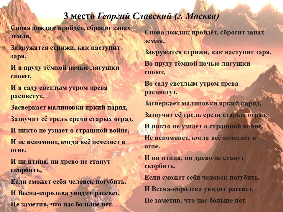 Слайд 2: 3 место Георгий Славский (г. Москва)