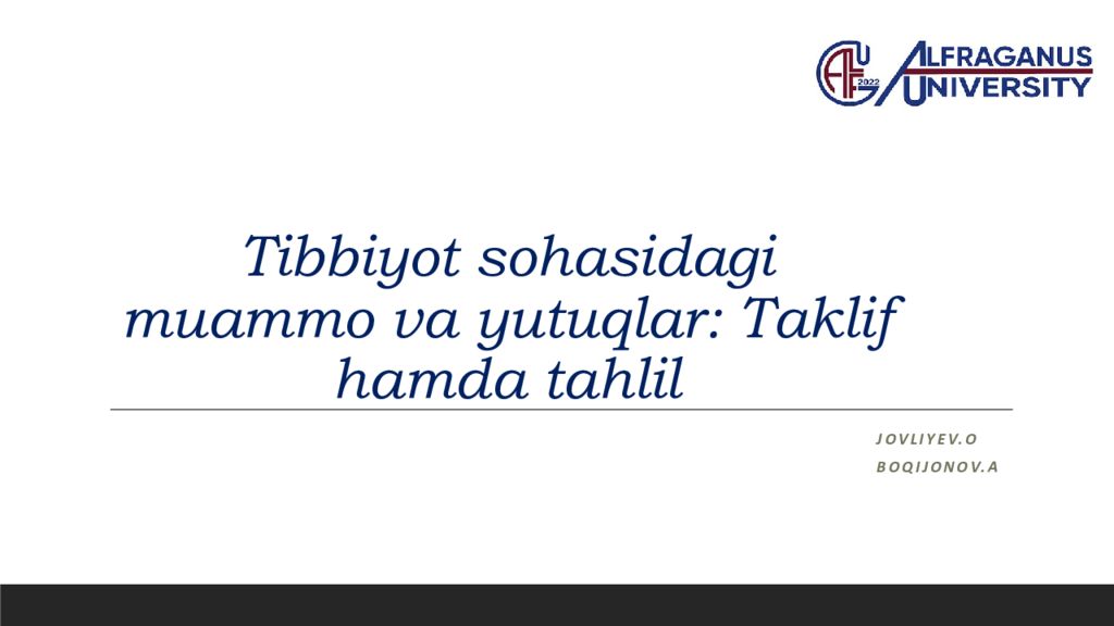 Первый слайд презентации: Tibbiyot sohasidagi muammo va yutuqlar: Taklif hamda tahlil