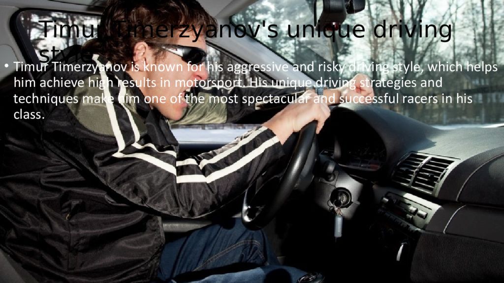 Timur Timerzyanov is known for his aggressive and risky driving style, which helps him achieve high results in motorsport. His unique driving strategies and techniques make him one of the most spectacular and successful racers in his class.