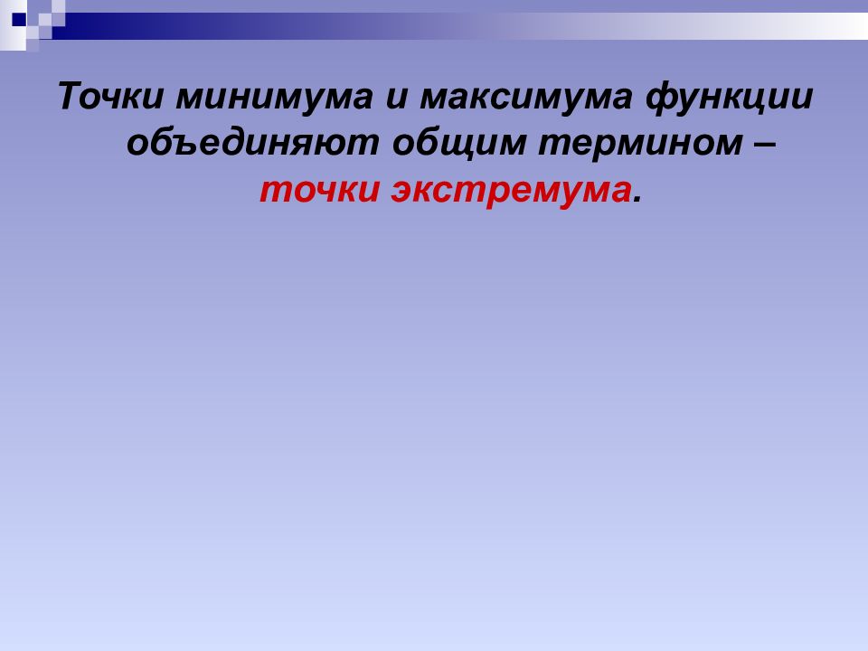 Точки минимума и максимума функции объединяют общим термином – точки экстремума.