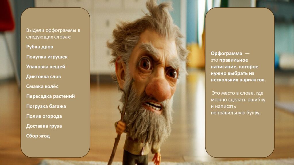 Выдели орфограммы в следующих словах: Рубка дров Покупка игрушек Упаковка вещей Диктовка слов Смазка колёс Пересадка растений Погрузка багажа Полив огорода Доставка груза Сбор ягод Орфограмма — это правильное написание, которое нужно выбрать из нескольких вариантов. Это место в слове, где можно сделать ошибку и написать неправильную букву.