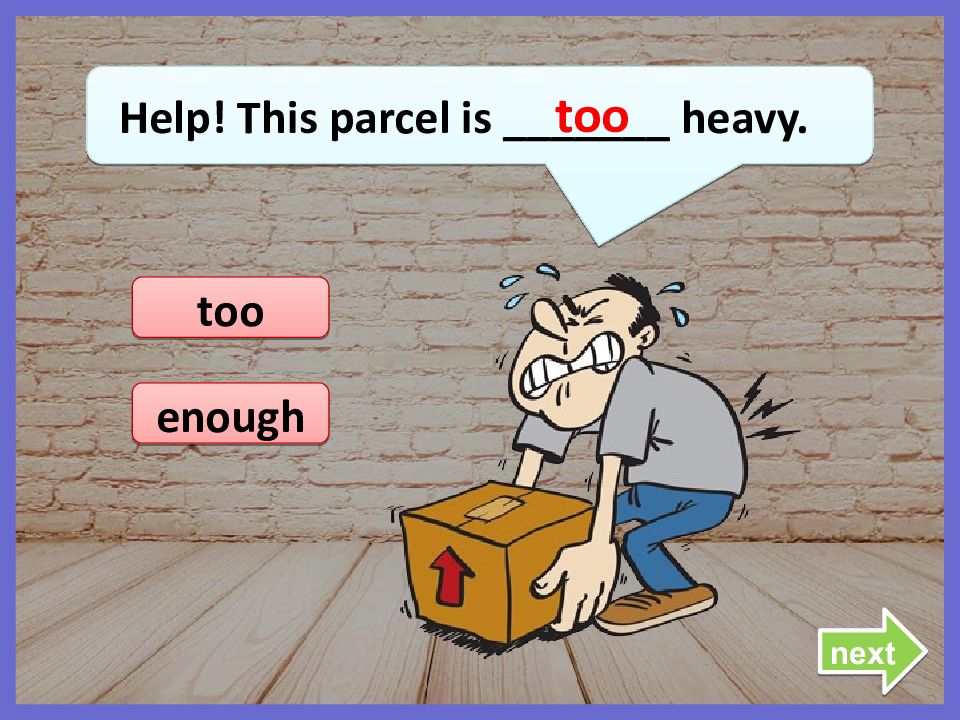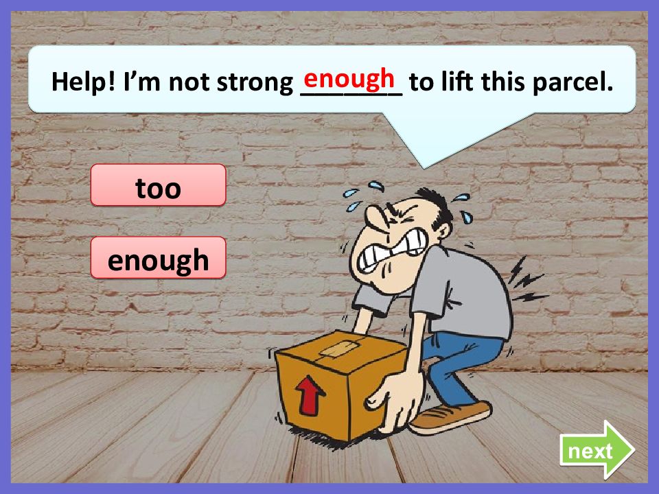 Help ! I’m not strong _______ to lift this parcel. enough too enough next