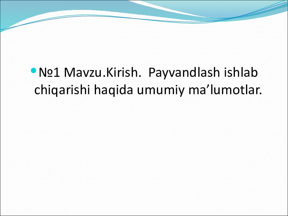 №1 Mavzu. Kirish. Payvandlash ishlab chiqarishi haqida umumiy ma’lumotlar.