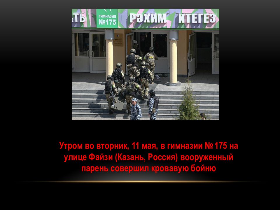 Утром во вторник, 11 мая, в гимназии № 175 на улице Файзи (Казань, Россия) вооруженный парень совершил кровавую бойню