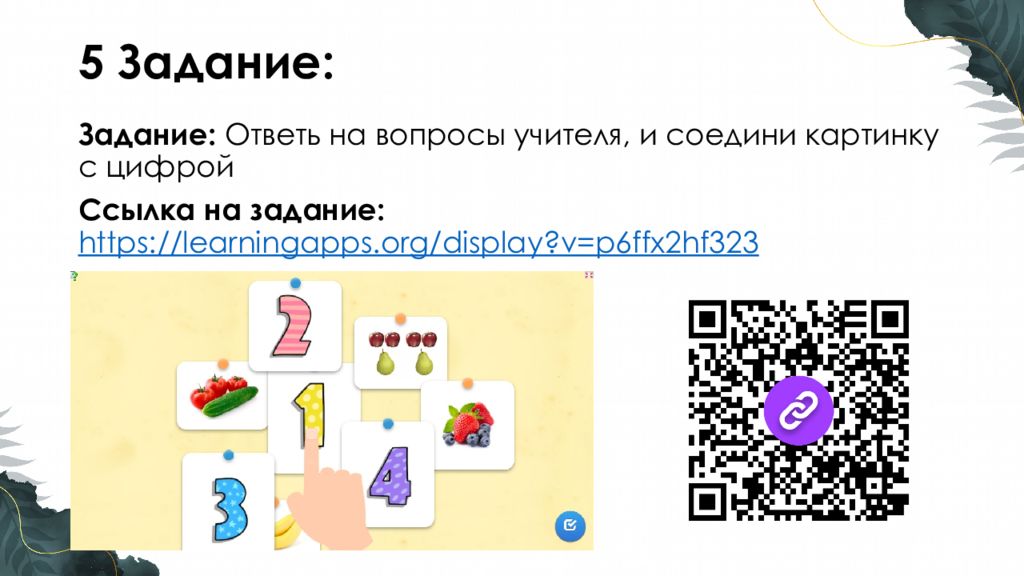 Задание : Ответь на вопросы учителя, и соедини картинку с цифрой Ссылка на задание : https://learningapps.org/display?v=p6ffx2hf323
