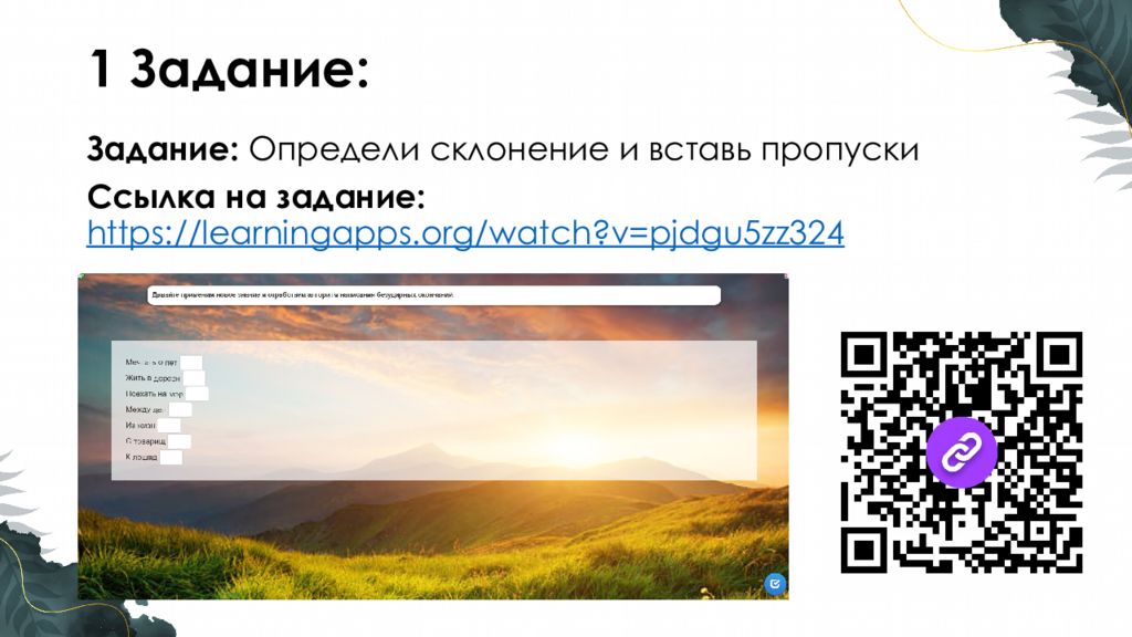 Задание : Определи склонение и вставь пропуски Ссылка на задание : https://learningapps.org/watch?v=pjdgu5zz324