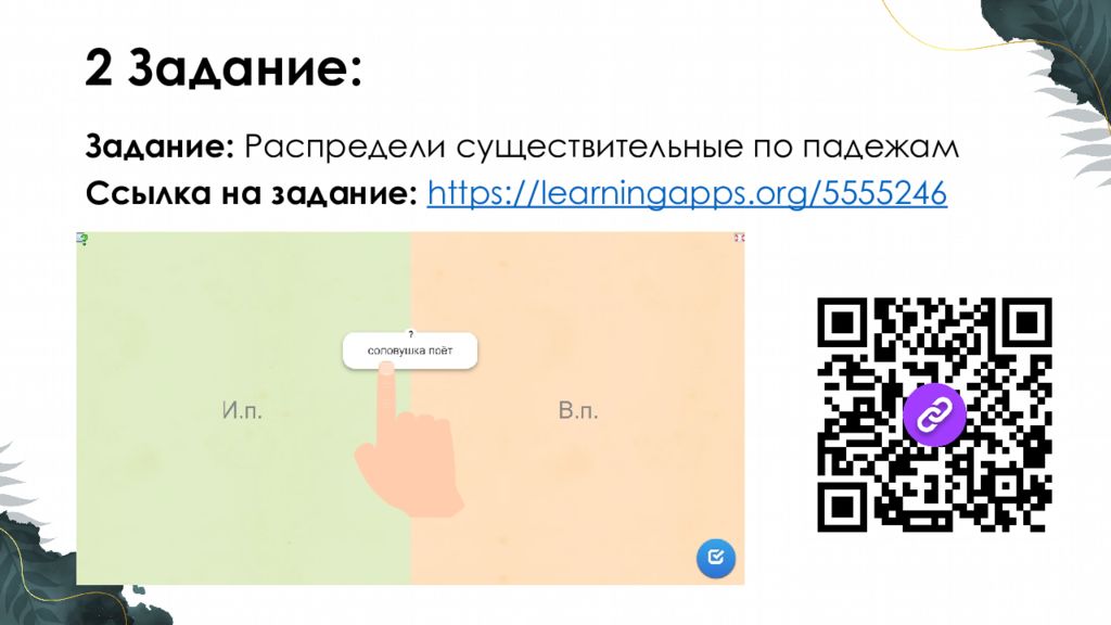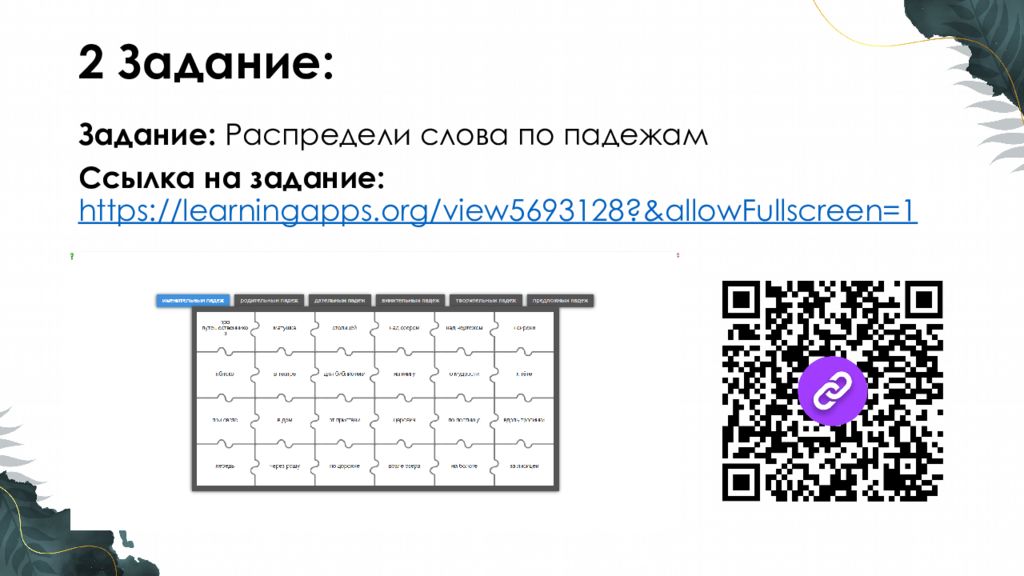 Задание : Распредели существительные по падежам Ссылка на задание : https://learningapps.org/5555246