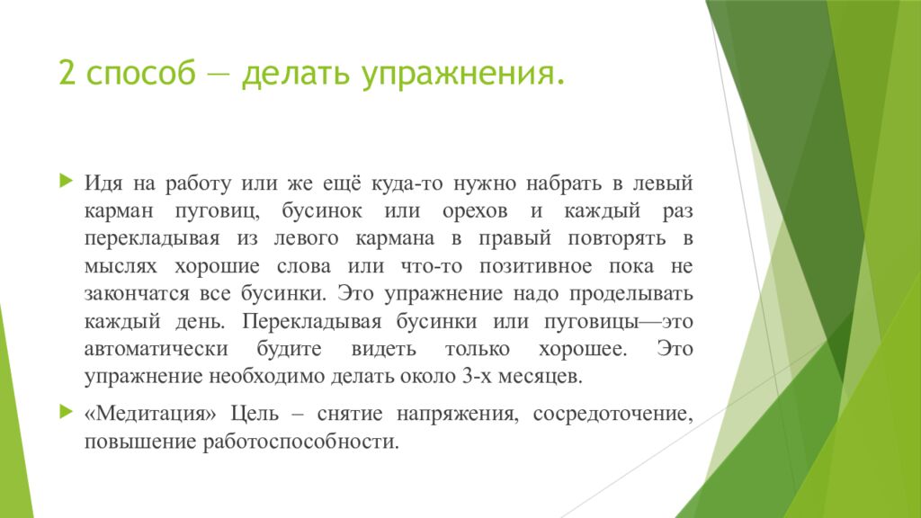 Слайд 12: 2 способ — делать упражнения