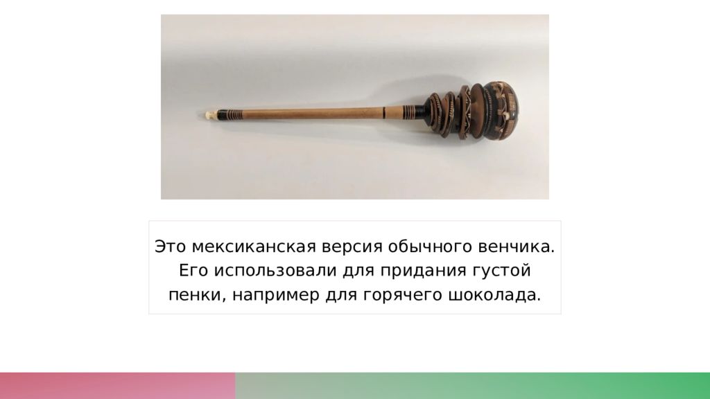 Это мексиканская версия обычного венчика. Его использовали для придания густой пенки, например для горячего шоколада.