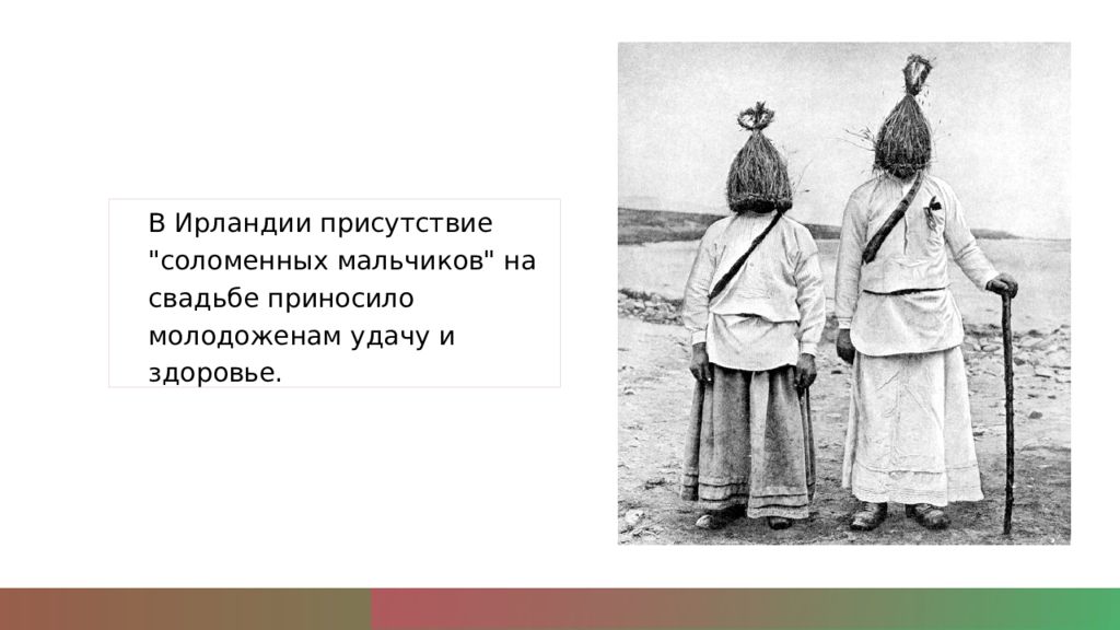 В Ирландии присутствие "соломенных мальчиков" на свадьбе приносило молодоженам удачу и здоровье.