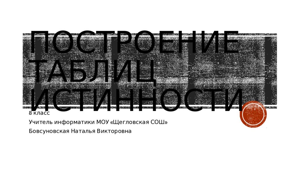 8 класс Учитель информатики МОУ « Щегловская СОШ» Бовсуновская Наталья Викторовна