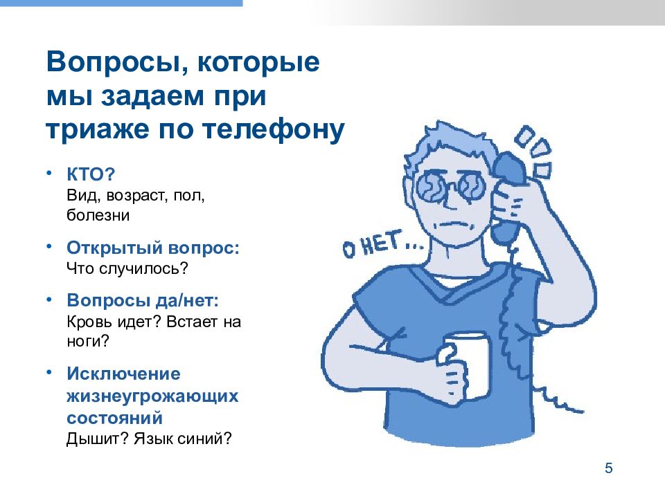 Слайд 5: Вопросы, которые мы задаем при триаже по телефону