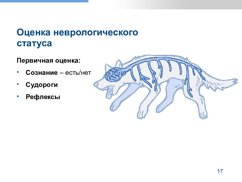 Первичная оценка: Сознание – есть / нет Судороги Рефлексы 17