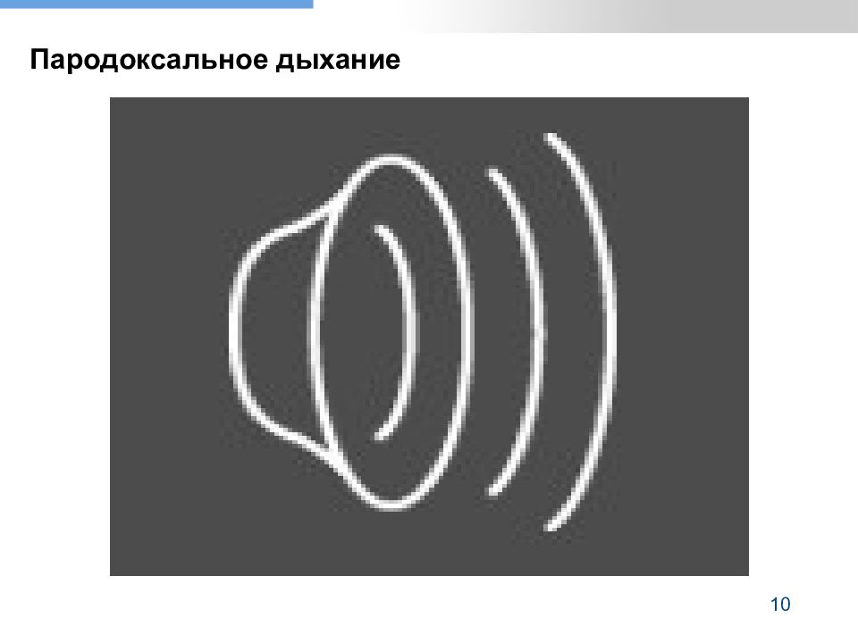 9 Локалицация проблемы: Верхние дыхательные пути: нЧДД / ↑ЧДД, инспираторная одышка, стридор, стертор БЦС, обструкция, ларингоспазм Нижние дыхательные пути: ↑ ЧДД, экспираторная одышка, стридор, кашель, жесткое дых. Обструкция, астма, коллапс, экссудат в просвете, бронхит Грудная клетка Парадоксальное дыхание, флотация, патологические движения Плевральная полость поверхностное дыхание, приглушение при аускультации, инспираторное усиление Паренхима легких: ↑ЧДД, инспираторное и экспираторное усиление, одышка, аускультация патологические шумы (крепитация, хрипы) Оценка респираторной системы