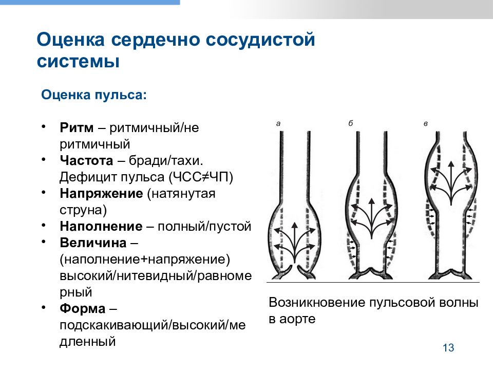 Слайд 12: Оценка сердечно сосудистой системы Пульс