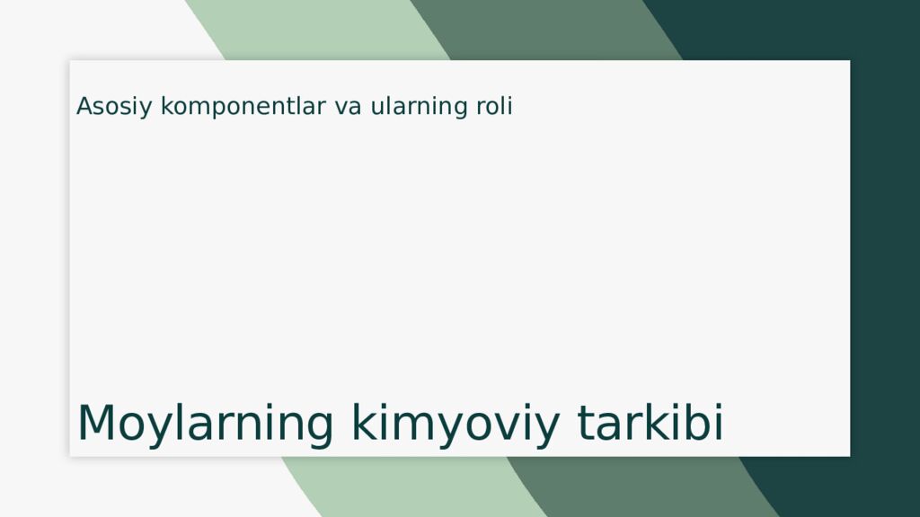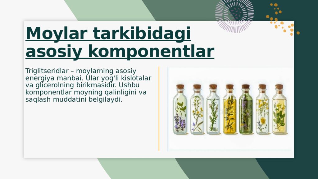 Слайд 9: Moylar tarkibidagi asosiy komponentlar