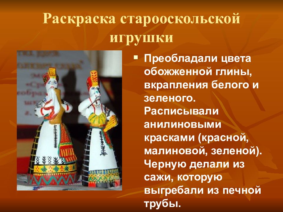 Слайд 13: Отличительные особенности Старооскольской и Борисовской игрушек