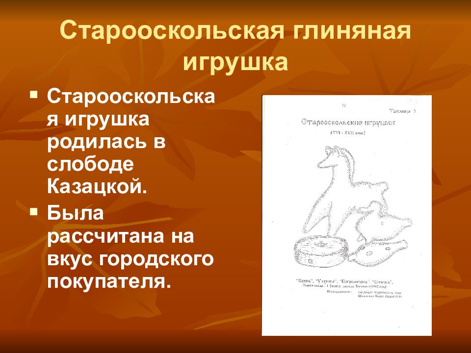 Старооскольская игрушка родилась в слободе Казацкой. Была рассчитана на вкус городского покупателя.