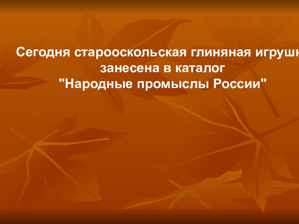 Сегодня старооскольская глиняная игрушка занесена в каталог "Народные промыслы России"