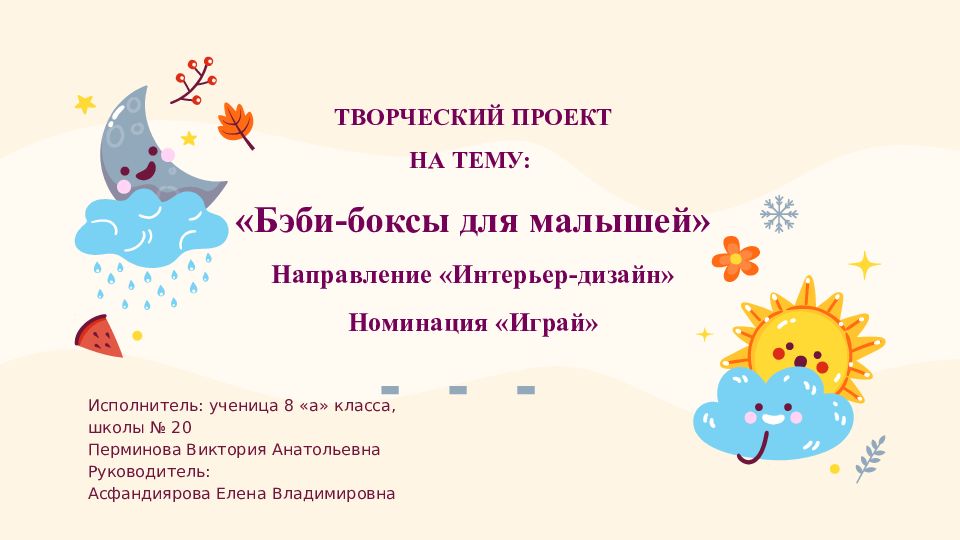 Первый слайд презентации: ТВОРЧЕСКИЙ ПРОЕКТ НА ТЕМУ: «Бэби-боксы для малышей» Направление «Интерьер-дизайн» Номинация «Играй»