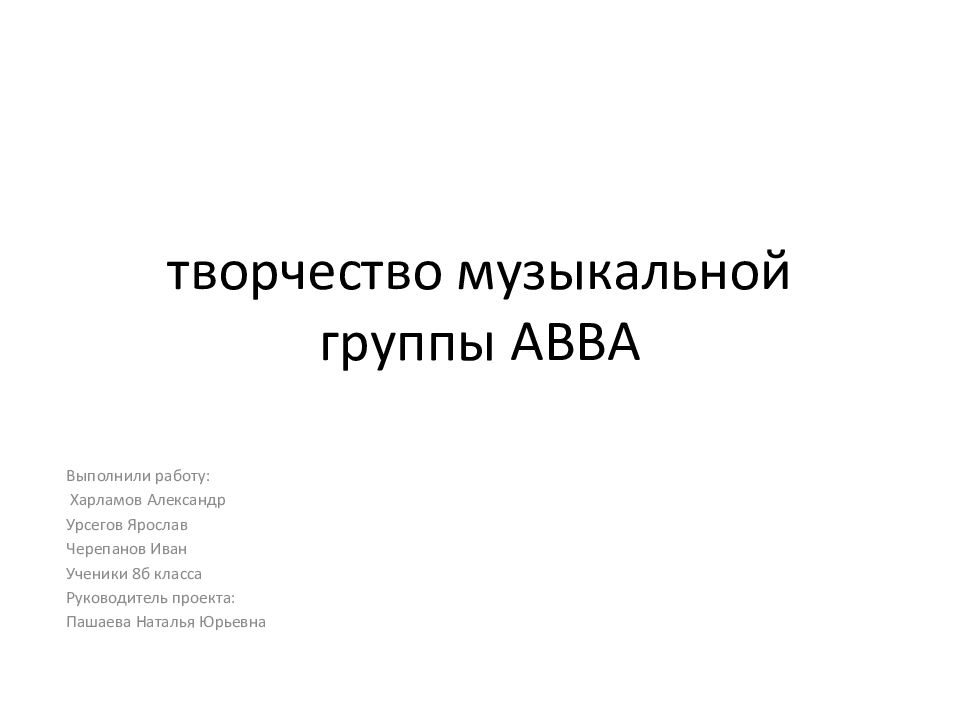 Первый слайд презентации: творчество музыкальной группы ABBA