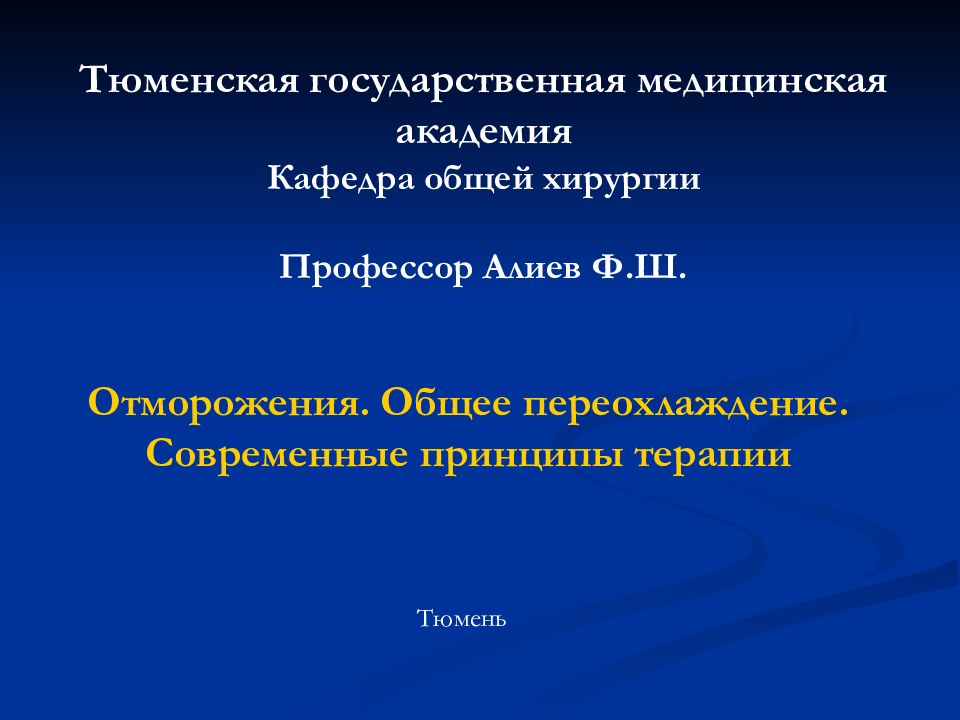 Первый слайд презентации: Тюменская государственная медицинская академия Кафедра общей хирургии Профессор Алиев Ф.Ш