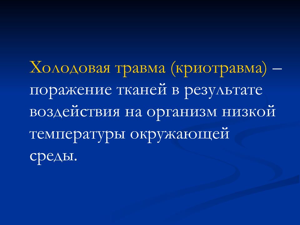 Холодовая травма (криотравма) – поражение тканей в результате воздействия на организм низкой температуры окружающей среды.