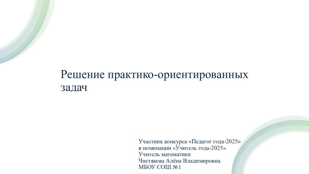 Первый слайд презентации: Участник конкурса «Педагог года-2025» в номинации «Учитель года-2025» Учитель математики Чистякова Алёна Владимировна МБОУ СОШ №1