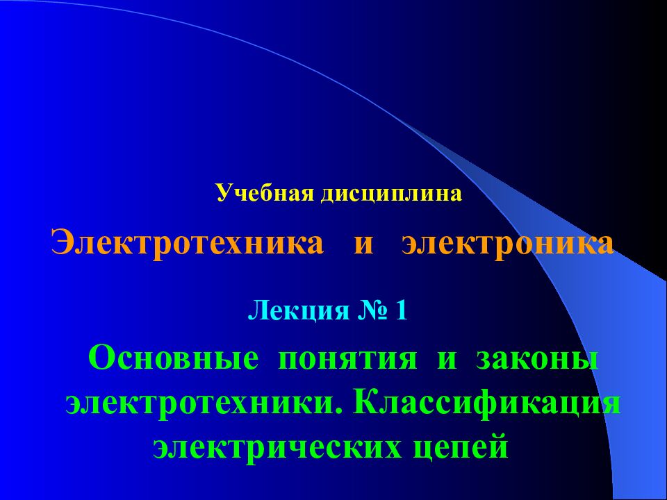 Учебная дисциплина Электротехника и электроника Лекция № 1 Основные понятия и законы электротехники. Классификация электрических цепей