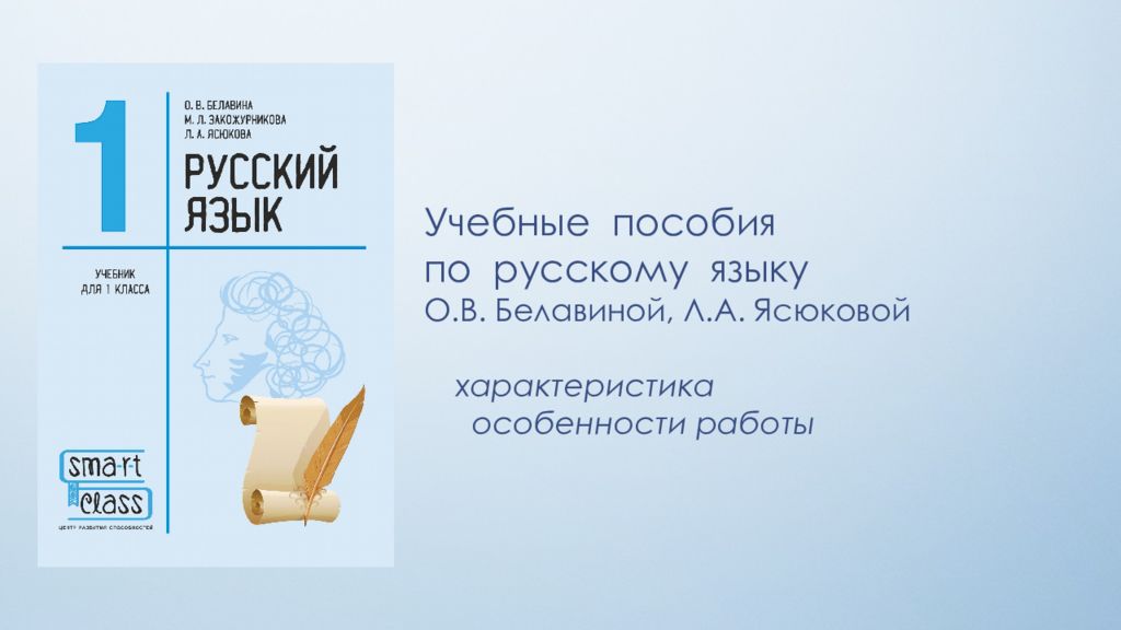 Первый слайд презентации: Учебные пособия по русскому языку О.В. Белавиной, Л.А. Ясюковой характеристика особенности работы
