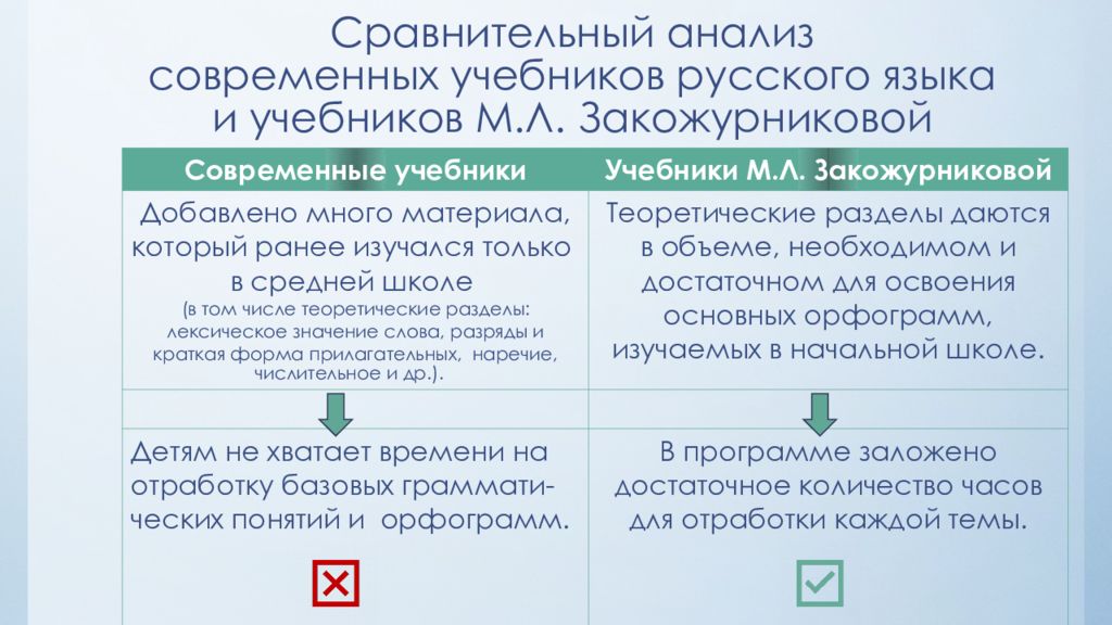 Слайд 6: Сравнительный анализ современных учебников русского языка и учебников М.Л. Закожурниковой